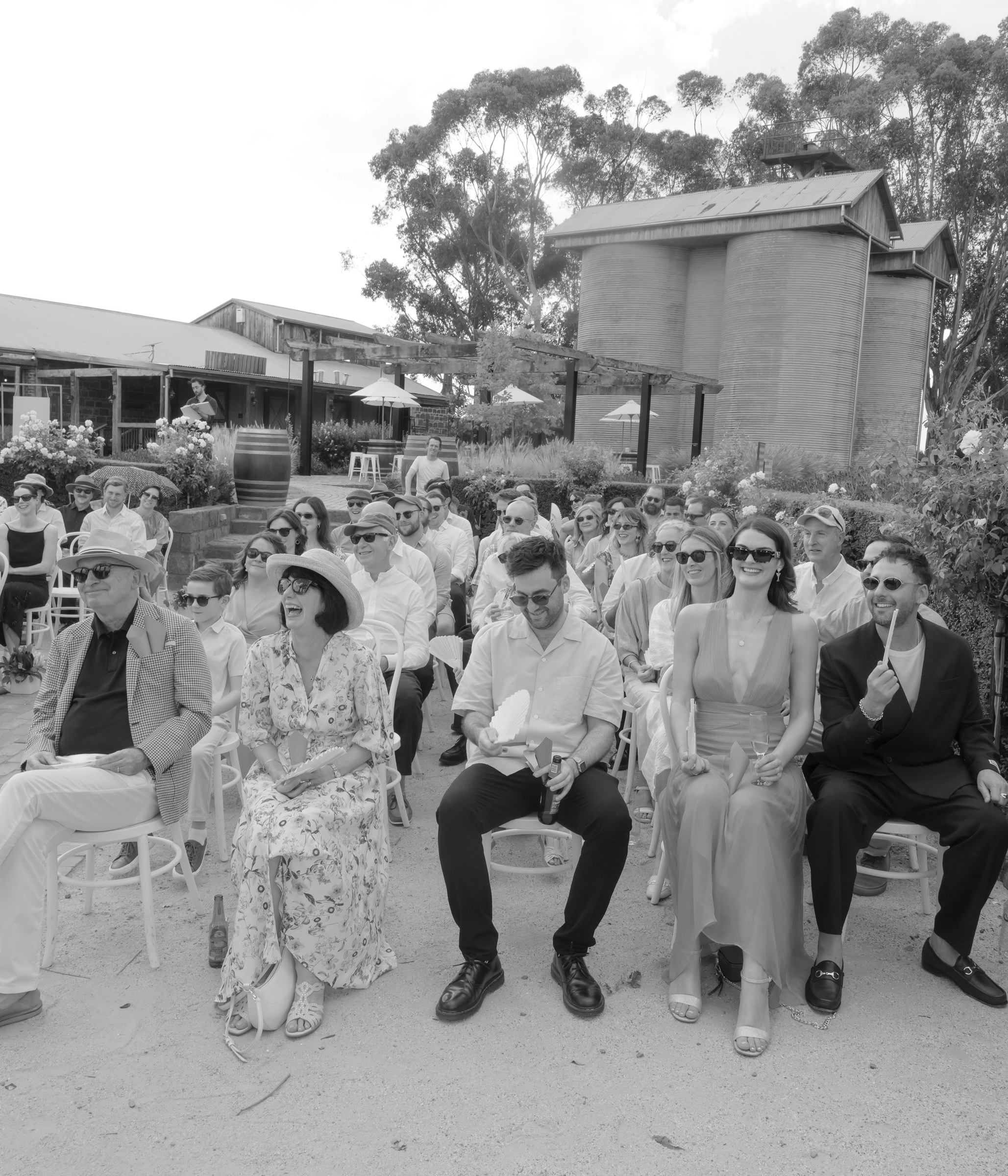 As for us, we slung around an array of digital and film cameras to scratch their itch for artistic coverage of the fabulous wedding gathering at Warrawong Estate, sealing the deal with the ordering of a few copies of our inimitable wedding books bound in leather.